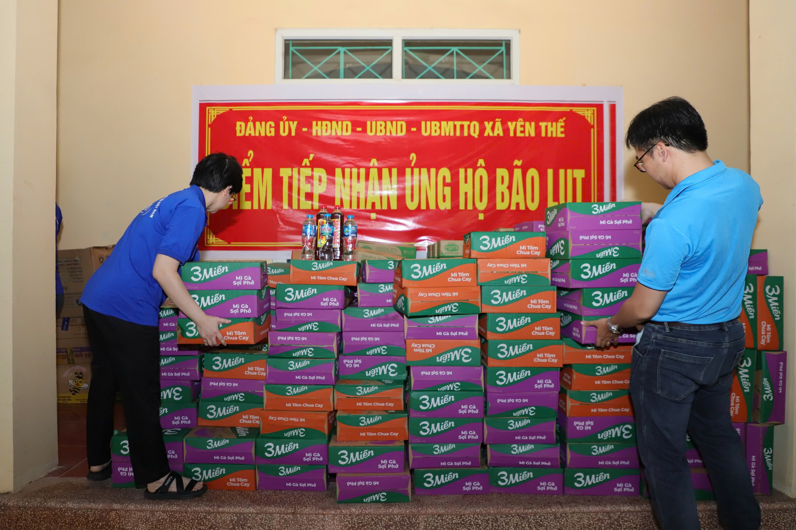 Tại đây, đoàn công tác BHTGVN đã làm việc với chính quyền xã, trao tặng nhu yếu phẩm thông qua Ủy ban Mặt trận Tổ quốc xã Yên Thế để kịp thời phân bổ đến các hộ dân bị thiệt hại nặng, góp phần giúp địa phương khắc phục hậu quả thiên tai.