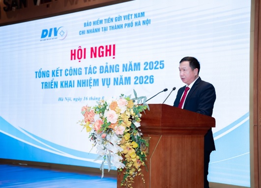 Sáng ngày 16/1/2026, tại Hà Nội, Chi nhánh Bảo hiểm tiền gửi Việt Nam (BHTGVN) tại thành phố Hà Nội tổ chức Hội nghị tổng kết công tác Đảng năm 2025 và triển khai nhiệm vụ năm 2026.