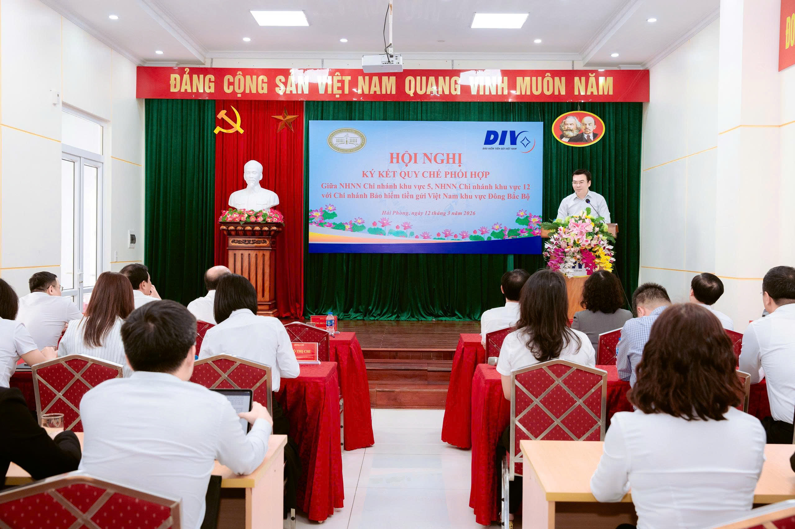 Về phía BHTGVN có ông Đặng Duy Cường – Thành viên HĐQT, Tổng Giám đốc; bà Hoàng Thị Phương Hạnh – Thành viên chuyên trách HĐQT; bà Phan Thị Thanh Bình - Phó Tổng Giám đốc; ông Đoàn Mạnh Tú - Phó Tổng Giám đốc; ông Lương Trần Chung – Giám đốc Chi nhánh khu vực Đông Bắc Bộ cùng các thành viên Ban Giám đốc và lãnh đạo một số phòng chức năng, nghiệp vụ Chi nhánh.