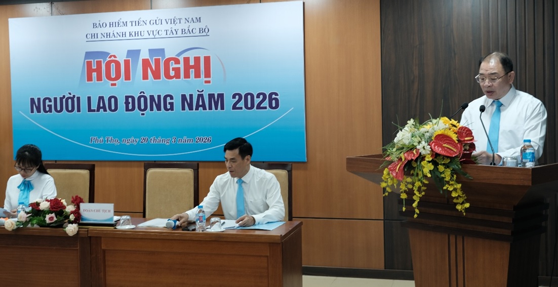 Phát biểu chỉ đạo tại Hội nghị, ông Đặng Văn Tới - Ủy viên Ban chấp hành Đảng bộ, Thành viên HĐQT đánh giá cao tinh thần đoàn kết và những thành tích Chi nhánh đạt được trong năm qua. Về phương hướng công tác năm 2026, ông Đặng Văn Tới nhấn mạnh một số nhiệm vụ trọng tâm Chi nhánh cần tập trung thực hiện như: triển khai Luật BHTG 2025; tham gia vào quá trình can thiệp sớm, kiểm soát đặc biệt, xử lý các tổ chức tín dụng hoạt động yếu kém; sẵn sàng phương án chi trả khi có phát sinh...; đồng thời đề nghị Chi nhánh tiếp tục quan tâm thực hiện tốt chính sách liên quan đến người lao động; tiếp tục đổi mới cách thức tổ chức hoạt động công đoàn, đoàn thanh niên, tăng cường hơn nữa hiệu quả, chất lượng triển khai, đảm bảo hoạt động đoàn thể gắn sát hơn với công tác chuyên môn, nhiệm vụ chính trị.