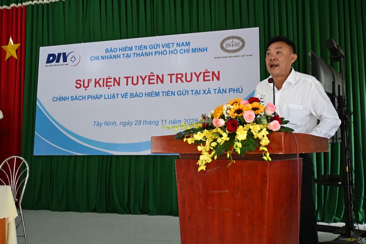 Phát biểu tại sự kiện, ông Trần Thiên Trí – Phó Giám đốc NHNN Chi nhánh Khu vực 13 đánh giá cao sự chủ động của Chi nhánh BHTGVN tại TP. Hồ Chí Minh trong việc phối hợp cùng NHNN, chính quyền địa phương và QTDND trong công tác tổ chức sự kiện tuyên truyền chính sách, pháp luật về BHTG. Theo ông Trần Thiên Trí, sự kiện có ý nghĩa quan trọng giúp người dân và các thành viên tại QTDND Tân Hưng hiểu rõ hơn về chính sách BHTG - chính sách công của Nhà nước nhằm bảo vệ quyền lợi hợp pháp của người gửi tiền. Khi chính sách được tuyên truyền rộng rãi sẽ góp phần gia tăng niềm tin, giúp người dân yên tâm gửi tiền, từ đó góp phần thúc đẩy tăng trưởng huy động vốn cho phát triển kinh tế trên địa bàn tỉnh Tây Ninh.