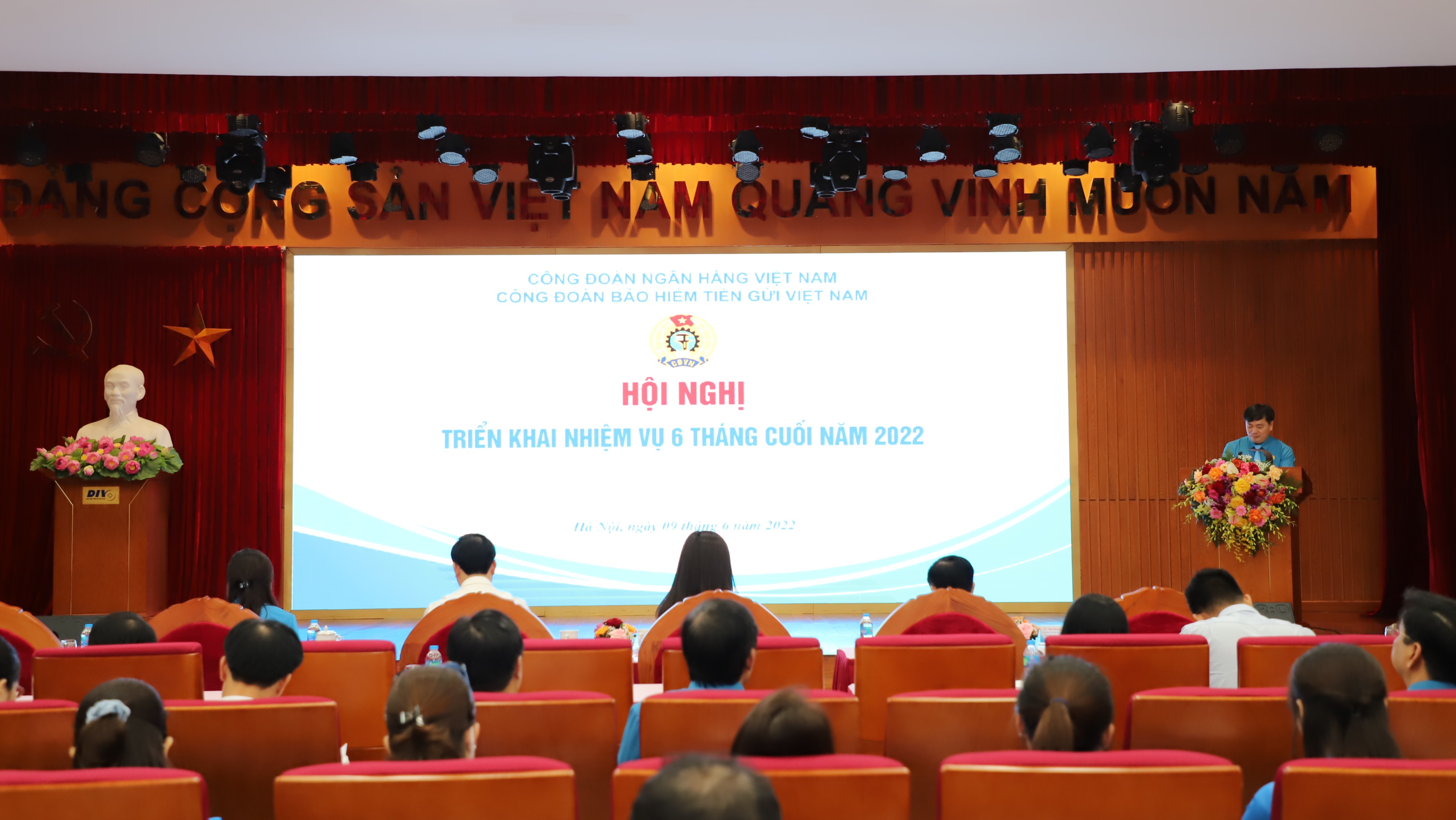 Phát biểu chỉ đạo tại hội nghị, sau khi ghi nhận và biểu dương những kết quả đạt được của Công đoàn BHTGVN trong 6 tháng đầu năm, đồng chí Đào Quốc Tính - Tổng Giám đốc BHTGVN yêu cầu Công đoàn tiếp tục nỗ lực, phát huy công tác bảo vệ quyền lợi người lao động, động viên khen thưởng kịp thời đối với các tập thể, cá nhân có thành tích tốt, góp phần thúc đẩy người lao động nhiệt tình, hăng say nâng cao năng suất, hiệu quả công việc. Đặc biệt, Công đoàn BHTGVN cần thường xuyên quán triệt, giáo dục đoàn viên, người lao động tuân thủ pháp luật, bài trừ tệ nạn; phấn đấu song hành giữa việc tham gia các hoạt phong trào với việc hoàn thiện các nhiệm vụ chuyên môn; xây dựng BHTGVN tiếp tục là một tổ chức đoàn kết, thống nhất cao. Công đoàn cần phối hợp cùng với chuyên môn triển khai thực hiện tốt các nhiệm vụ trọng tâm của BHTGVN trong năm 2022, đặc biệt là hoàn thiện dự thảo Chiến lược phát triển BHTG đến năm 2025, tầm nhìn đến năm 2030, đề xuất các nội dung sửa đổi bổ sung Luật BHTG để báo cáo Ngân hàng Nhà nước trình các cơ quan có thẩm quyền...