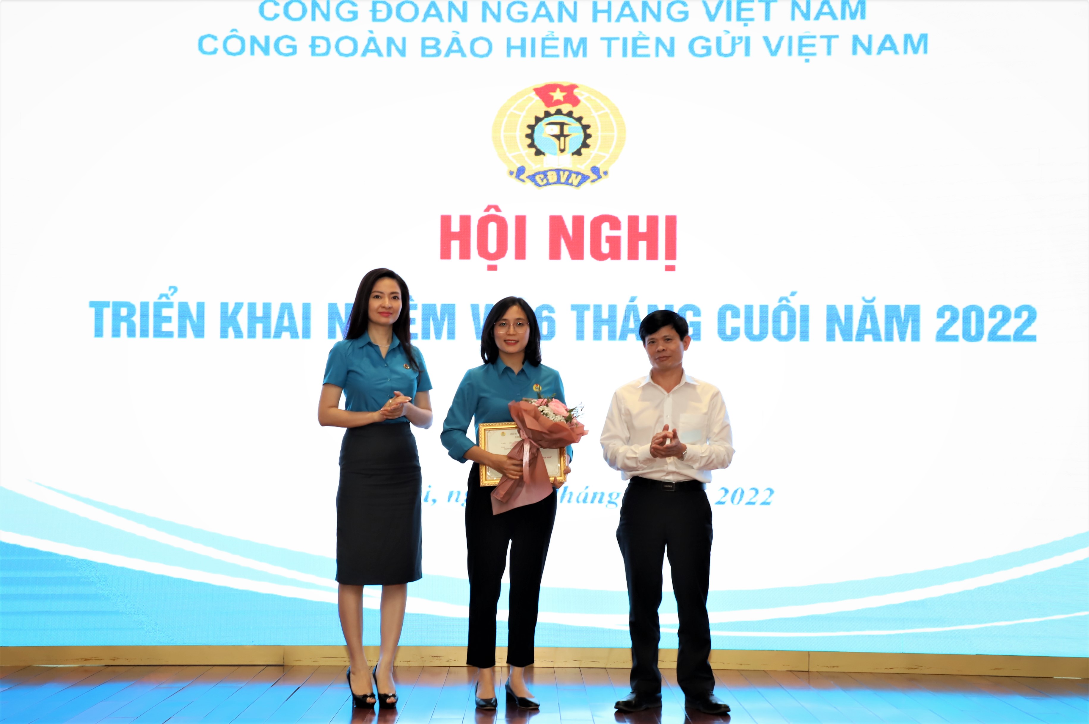 Trong khuôn khổ hội nghị, các tập thể, cá nhân có thành tích xuất sắc trong hoạt động công đoàn năm 2021 đã vinh dự đón nhận quyết định khen thưởng của Công đoàn NHVN, Ban Chấp hành Công đoàn BHTGVN.