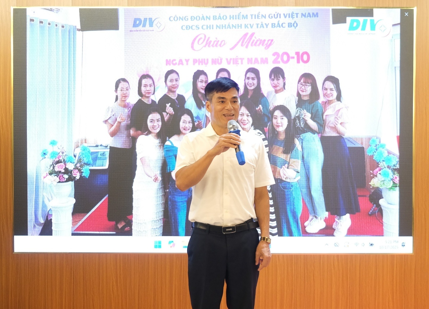 Phát biểu tại buổi gặp mặt, ông Vũ Việt Dũng - Chủ tịch Công đoàn cơ sở, Phó Giám đốc Chi nhánh gửi lời chúc mừng tới toàn thể cán bộ nữ nhân Ngày Phụ nữ Việt Nam 20/10, đồng thời bày tỏ niềm tự hào và trân trọng trước những nỗ lực, cống hiến và thành tích nổi bật của chị em trong công tác thời gian qua. Tin tưởng vào tinh thần đoàn kết, sáng tạo và nhiệt huyết, ông kỳ vọng các cán bộ nữ sẽ tiếp tục phát huy phẩm chất tốt đẹp, cùng tập thể Chi nhánh hoàn thành xuất sắc mọi nhiệm vụ được giao.