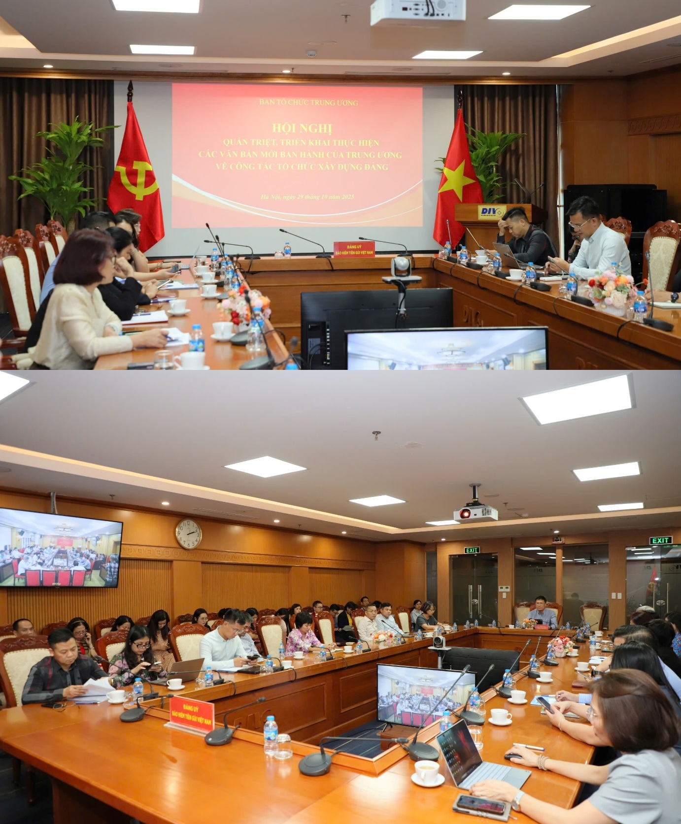 Đảng bộ Bảo hiểm tiền gửi Việt Nam (BHTGVN) tham dự Hội nghị trực tuyến tại Trụ sở chính có đồng chí Phạm Bảo Lâm - Ủy viên Ban chấp hành Đảng bộ Chính phủ, Bí thư Đảng uỷ, Chủ tịch Hội đồng quản trị cùng các đồng chí Uỷ viên Ban Thường vụ, Ủy viên Ban chấp hành Đảng bộ; Uỷ viên Uỷ ban Kiểm tra Đảng uỷ; cấp uỷ các chi bộ trực thuộc Trụ sở chính; đại diện Công đoàn, Đoàn thanh niên BHTGVN; lãnh đạo, cán bộ các cơ quan tham mưu, giúp việc Đảng uỷ BHTGVN. Tại các Chi nhánh khu vực có cấp uỷ các đảng bộ, chi bộ cơ sở; Uỷ viên Uỷ ban Kiểm tra Đảng uỷ cơ sở Chi nhánh.