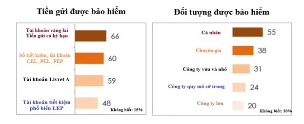 Các loại tiền gửi được bảo hiểm vẫn được công chúng biết đến rộng rãi: Có 66% người dân xác định tài khoản vãng lai và tiền gửi có kỳ hạn là những loại tiền gửi được bảo hiểm (tăng 4% kể từ năm 2016); Có 60% người Pháp biết sổ tiết kiệm, tài khoản CEL, PEL, PEP được bảo hiểm (tăng 3% so với năm 2016).