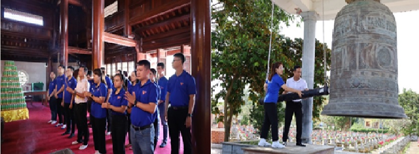 Đoàn đã đến dâng hoa, dâng hương và thỉnh chuông tưởng niệm tại Nghĩa trang liệt sĩ Việt – Lào (xã Anh Sơn, tỉnh Nghệ An). Trong không khí trang nghiêm, tiếng chuông tưởng niệm ngân vang giữa núi rừng như một lời tri ân sâu sắc gửi tới những người anh hùng liệt sĩ đã hy sinh vì độc lập tự do của Tổ quốc; thể hiện tình hữu nghị đặc biệt Việt – Lào và giáo dục truyền thống yêu nước cho đoàn viên, thanh niên.