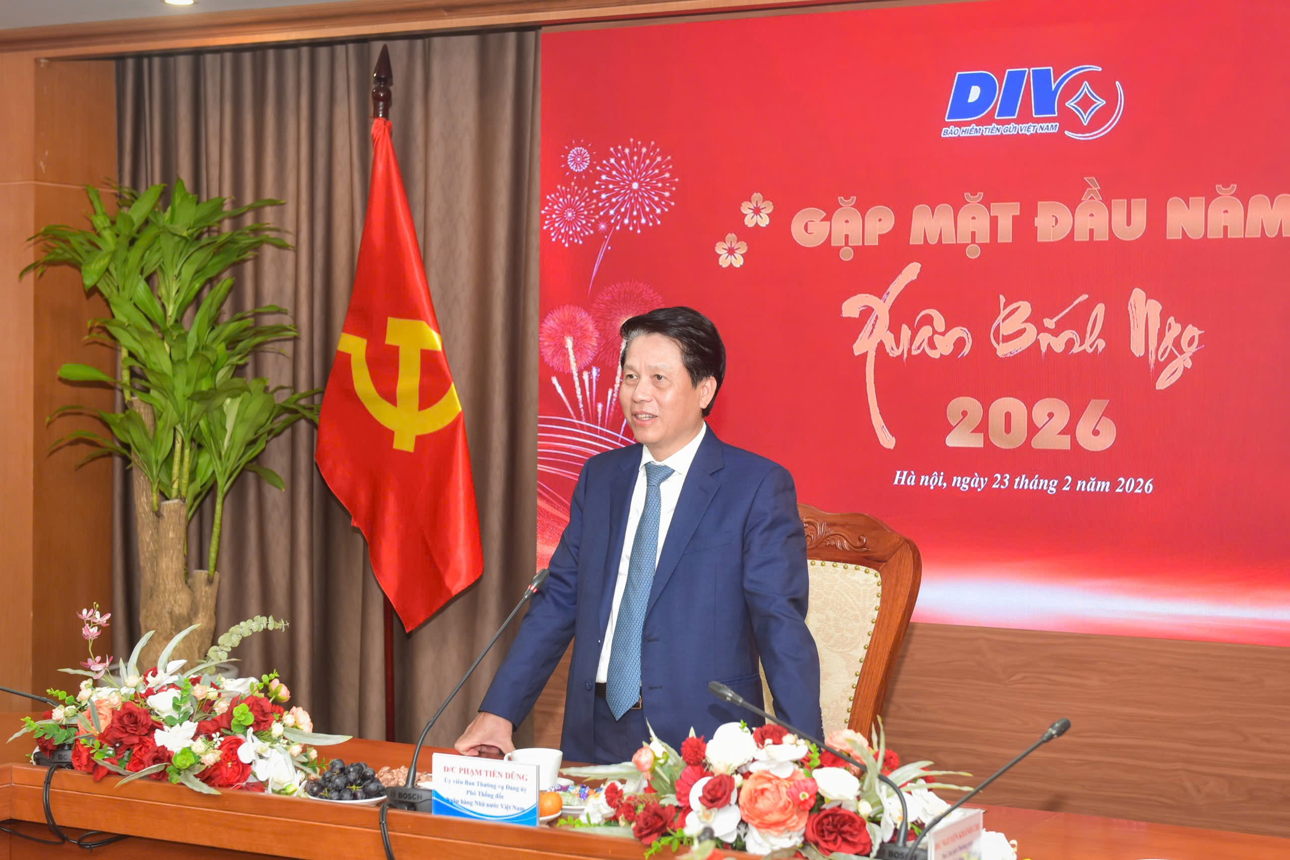 Phát biểu tại buổi gặp mặt, Phó Thống đốc NHNN Phạm Tiến Dũng gửi lời chúc tốt đẹp nhất tới Ban lãnh đạo và toàn thể cán bộ, nhân viên, người lao động BHTGVN nhân dịp xuân mới Bính Ngọ. Phó Thống đốc ghi nhận và đánh giá cao những kết quả tích cực mà BHTGVN đã đạt được thông qua qua việc hoàn thành vượt mức các chỉ tiêu được NHNN giao, đóng góp quan trọng vào việc hoàn thành các nhiệm vụ chung của ngành Ngân hàng.