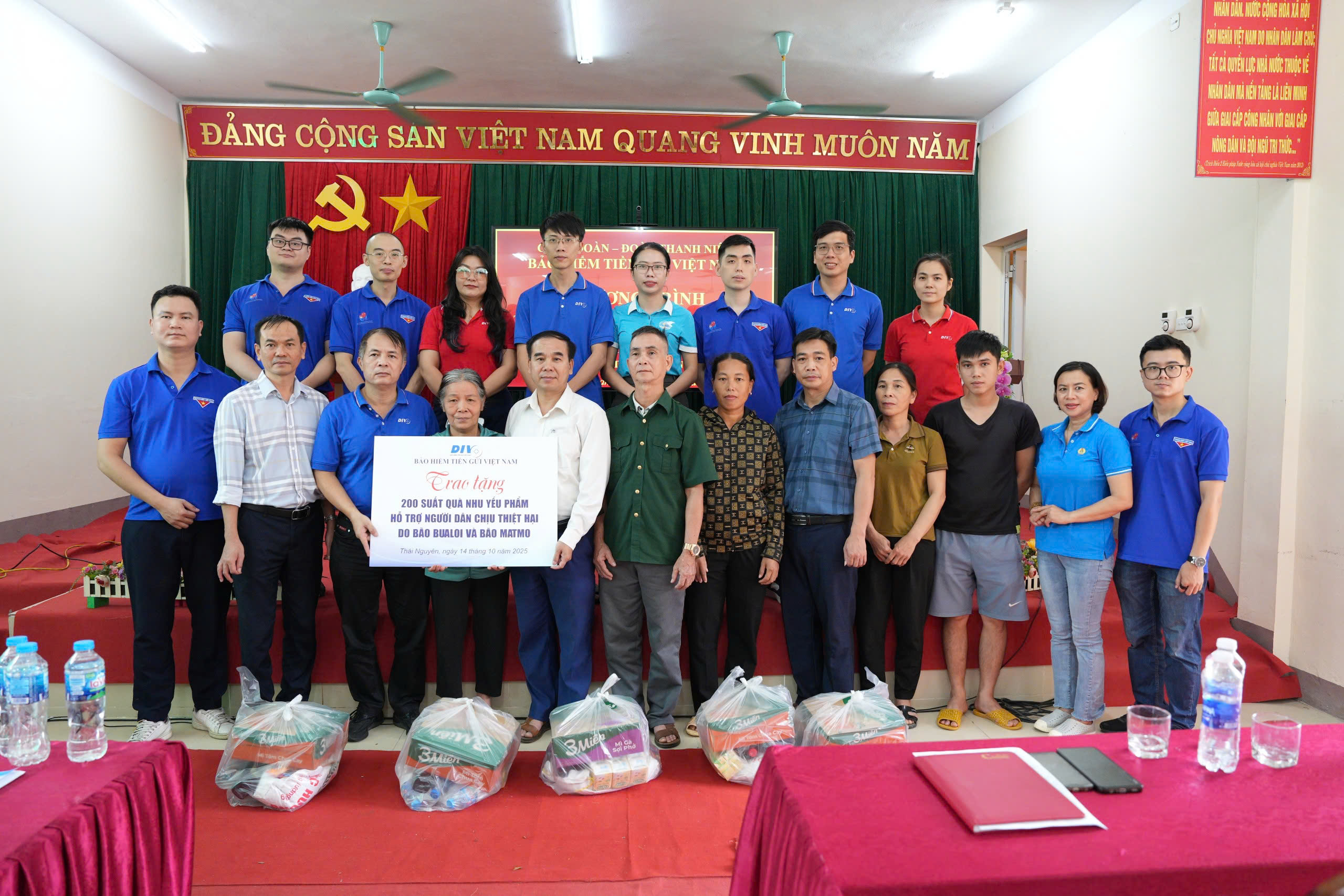 Tại đây, đoàn công tác BHTGVN đã làm việc với chính quyền xã, trao tặng nhu yếu phẩm thông qua Ủy ban Mặt trận Tổ quốc xã Yên Thế để kịp thời phân bổ đến các hộ dân bị thiệt hại nặng, góp phần giúp địa phương khắc phục hậu quả thiên tai.
