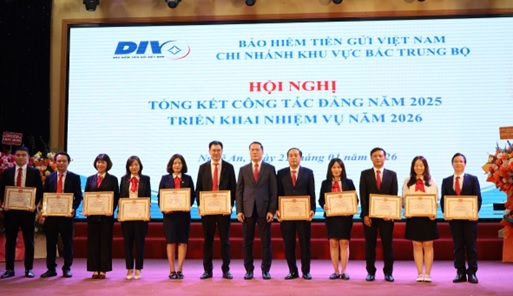 Ngày 21/1/2026, Chi nhánh Bảo hiểm tiền gửi Việt Nam (BHTGVN) khu vực Bắc Trung Bộ tổ chức Hội nghị tổng kết công tác Đảng năm 2025 và triển khai nhiệm vụ năm 2026.