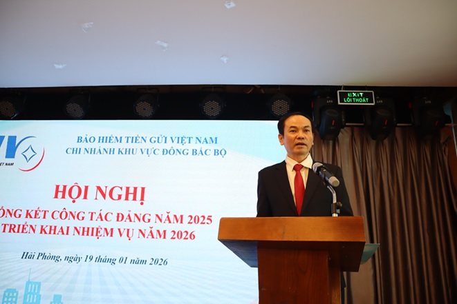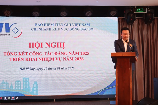 Sáng 19/1/2026, tại TP. Hải Phòng, Chi nhánh Bảo hiểm tiền gửi Việt Nam (BHTGVN) khu vực Đông Bắc Bộ tổ chức Hội nghị tổng kết công tác Đảng năm 2025, triển khai nhiệm vụ năm 2026.