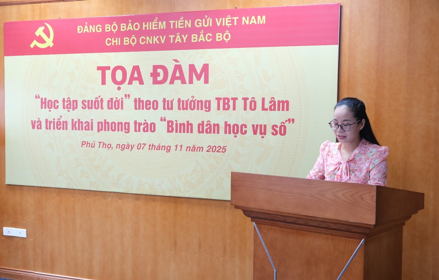 Buổi sinh hoạt chuyên đề không chỉ góp phần nâng cao nhận thức chính trị, tư tưởng cho đảng viên, mà còn mang ý nghĩa thực tiễn sâu sắc trong việc thúc đẩy văn hóa học tập, tinh thần đổi mới, sáng tạo - những yếu tố quan trọng để mỗi cán bộ, đảng viên của Chi nhánh thích ứng, phát triển bền vững trong thời kỳ chuyển đổi số. Chi bộ Chi nhánh BHTGVN khu vực Tây Bắc Bộ sẽ tiếp tục giữ vững truyền thống đoàn kết, tiên phong trong học tập và làm theo tư tưởng, đạo đức, phong cách Hồ Chí Minh, góp phần hoàn thành xuất sắc nhiệm vụ chính trị được giao, xây dựng Chi bộ ngày càng trong sạch, vững mạnh.