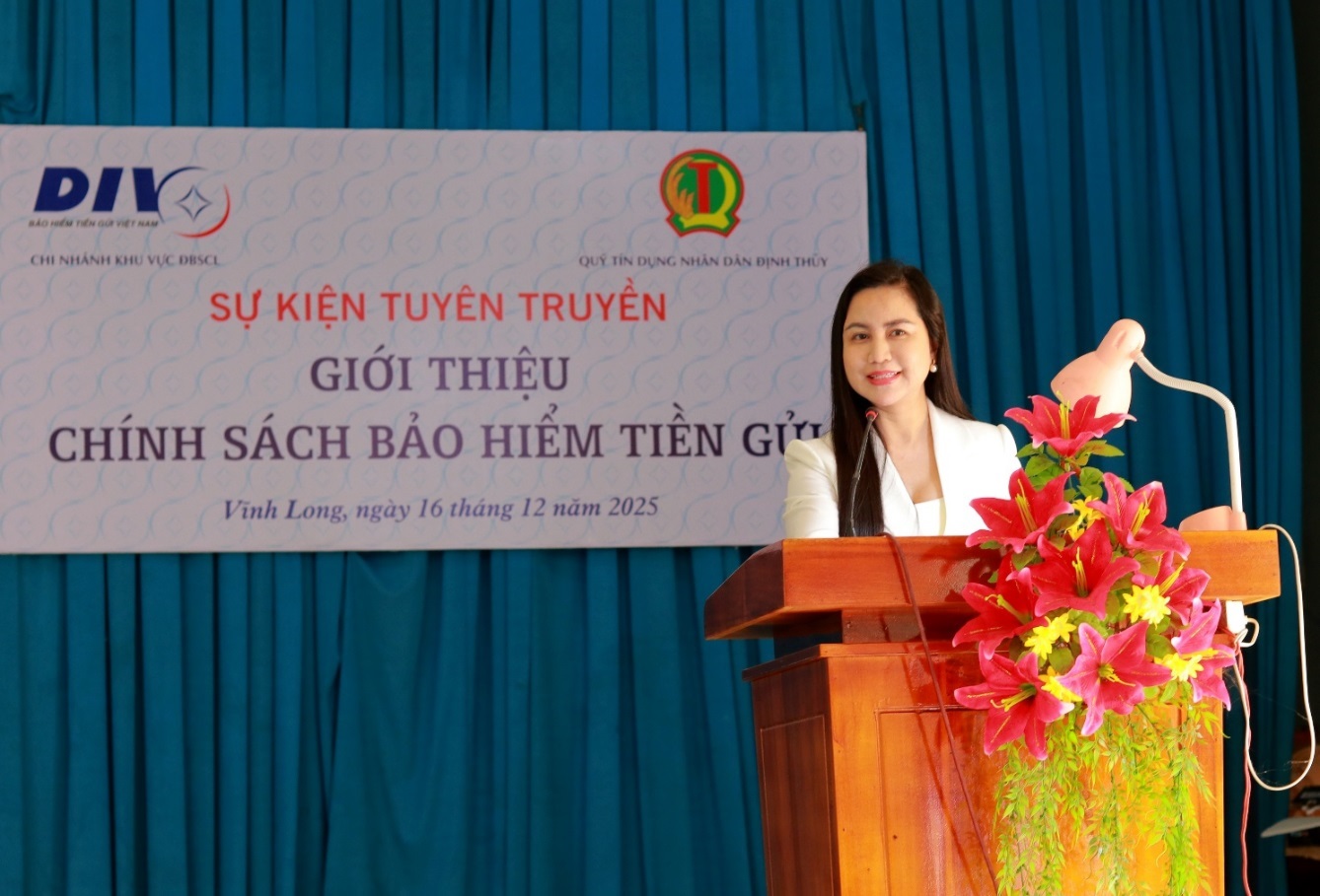 Phát biểu tại sự kiện, ông Lê Công Thành - Phó Giám đốc NHNN Chi nhánh Khu vực 14 đánh giá cao ý nghĩa của sự kiện, coi đây là sáng kiến thiết thực của BHTGVN trong việc đưa chính sách đến với người dân, giúp người gửi tiền hiểu đúng, đầy đủ về quyền lợi và các quy định pháp luật liên quan đến BHTG. Ông Thành khẳng định: BHTGVN là một trong những "trụ cột" quan trọng của mạng lưới an toàn tài chính quốc gia, góp phần bảo vệ quyền lợi hợp pháp của người gửi tiền, củng cố niềm tin vào hệ thống ngân hàng và hỗ trợ hoạt động ổn định của các TCTD. Với vai trò cơ quan quản lý Nhà nước, ông Thành đề nghị QTDND Định Thủy tiếp tục chấp hành nghiêm các quy định của pháp luật, chủ động phối hợp với BHTGVN trong việc cung cấp thông tin và xử lý khó khăn (nếu có).