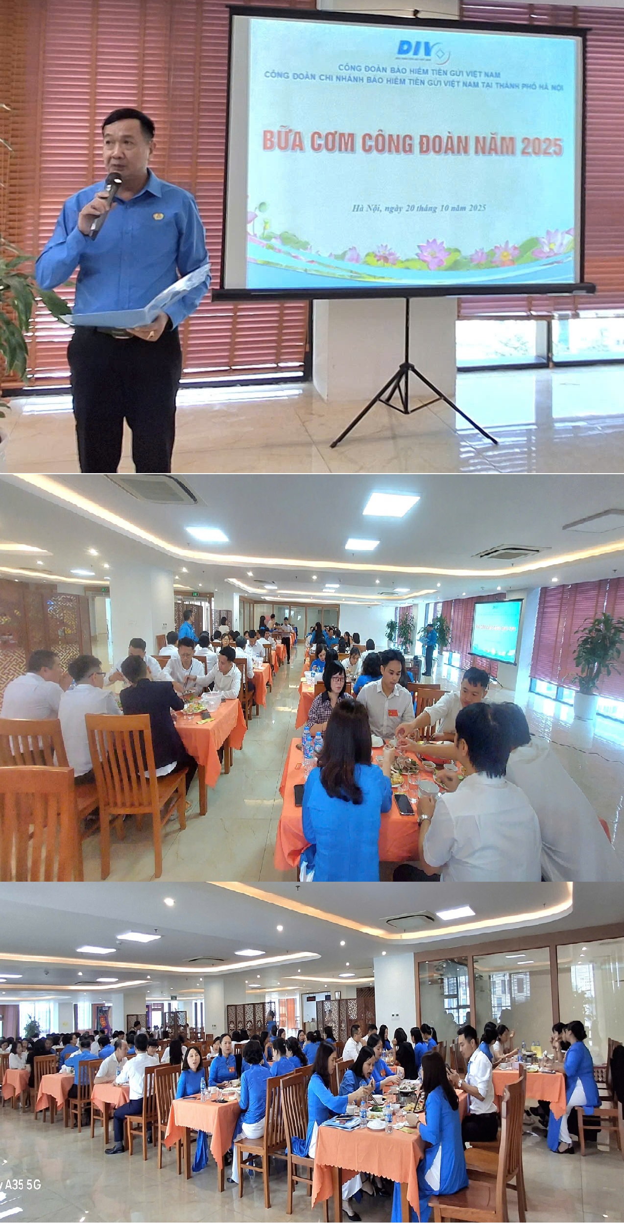 Trong không khí phấn khởi chào mừng Đại hội Công đoàn nhiệm kỳ 2025-2030 thành công, Công đoàn Chi nhánh tổ chức “Bữa cơm Công đoàn năm 2025” ấm cúng với sự tham dự của toàn thể đại biểu, đoàn viên công đoàn Chi nhánh. Đây là hoạt động thể hiện tình cảm gắn bó, đoàn kết - dấu ấn văn hóa đặc trưng của Công đoàn Chi nhánh Hà Nội, khép lại một nhiệm kỳ thành công và mở ra giai đoạn mới nhiều triển vọng.